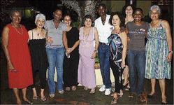It's all smiles as the Jamaica Tourist Board (JTB) treated their guests to dinner at The Courtyard, Market Place during The Gleaner sponsored Kingston Restaurant Week (KRW). Seated (from left) are Cynthia Sin-Yi Cheng of Cravings; Carolyn Malcovn of Eating Well magazine; Claudia Cole of the JTB; Patrick Campbell of JUTA; Essie Gardner also of the JTB; Vurit Pegresh and Scott Levy of The Jewish Post; Helen Ames of Roder Finn; Hope Philbrick of The Sunday Paper and Stephanie Scott conceptualiser of KRW. - Nathaniel Stewart/Freelance Photographer