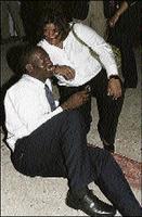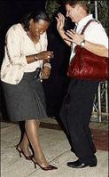 Lisa-Kaye Allen Henry, general counsel of the Airport Authority of Jamaica, and Mark Williams, vice-president for commercial marketing at Norman Manley International Airport, demonstrate how to 'LIME'.