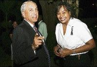 Claudette Kenlock, director of sales and marketing at the Hilton Kingston hotel, shows Phil Green, chief executive officer of LIME, a few dance moves during the LIME launch event at Mona Visitors' Lodge on Monday. - Nathaniel Stewart/Freelance Photographer