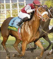 On all three occasions, NAVAL COMMANDER was ridden by visiting Panamanian jockey Dick Cardenas for owner Ruth Hussey.