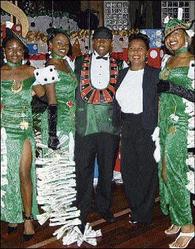 The entertainment playmates were dressed for the 'Casino Royale' theme at the 19th anniversary celebrations at the Grand Lido Negril Resort and Spa last Saturday. They are joined by Cheryl Moore (second right), entertainment projects director. - photo by Sheena Gayle