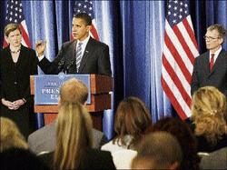 Daschle's selection as secretary of Health and Human Services has been known for some time, but Obama made it official in a news conference. He said Daschle also will oversee a new White House Office of Health Reform.