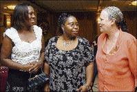 Beryl Cunningham (left), Sandra Cole and Ingrid Akpeti (right) were among recipients of the award for 21 years of service to the University of the West Indies' long-service and special 60th anniversary awards held at the Mona Visitors' Lodge on Tuesday.