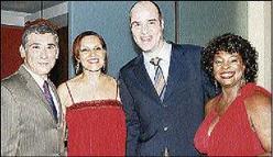 From left: Tourism consultant Doug Brooks, Deputy Director of Tourism Zachary Harding, Jacqueline Sangster-Brooks of the Office of the Prime Minister, and Tamara Harding were all in a festive mood last Saturday night at the Ritz-Carlton Rose Hall's evening of 'Putting on the Ritz' at Mac's Chop House in New Kingston. - Photos by Janet Silvera