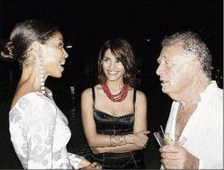 Chris Blackwell chats with Yendi Philipps (left), former Miss Jamaica World and Caterina Murino, Bond girl from the movie, Casino Royale, during the Heineken Bond VIP party. - photos by Latoya Grindley