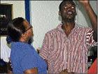 (3) "Thank you Lord!" said a tearful Kevin Stewart as he was announced the winner of The Gleaner's Red Label Wine Christmas cake contest. He is being congratulated (and consoled) by Marilyn Bennett of J. Wray and Nephew Ltd.