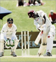 When Marshall edged Patel to Ross Taylor at slip and Chanderpaul uncharacteristically turned a full toss back to the bowler to depart the very next ball, Gayle slowed his advance and his second 50 required 124 balls.