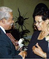 Police Commissioner, Rear Admiral Hardley Lewin, greets Rose Henry, president of the Constant Spring Consultative Committee's fund-raiser.- Winston Sill/Freelance Photographer