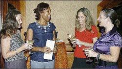 Director of sales for the Sunset Resort Group, Carol Dunbar (second left), plays host to tour operators and suppliers during an appreciation cocktail reception at Sunset Resort and Spa in Montego Bay on Thursday, January 29. Looking on (from left) are Amanda MacKay of Sunwing Vacations, Sherie Bailey, general manager with Spirit Airlines (Jamaica), and Aggie Farinelli, destination manager of Sunwing Vacations. - Photo by Noel Thompson