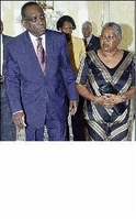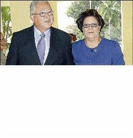 Mining and Telecommunications Minister Derrick Smith takes measured steps beside wife Carlene as they arrive for the swearing-in ceremony.