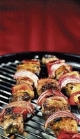 An adobo sauce rich with smoky chipotle chilies gives zest to pork tenderloin grilled wiht bell peppers and red onions. Puerto Rican influence can put extra spice into backyard barbecues. - MCT
