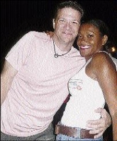 By the look of things, Stephen Gunter (left) and Jackie Donenico are having a ball inside the Digicel VIP area.