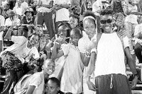 Students from St Andrew High School having a grand time in the bleachers during the 33rd Gibson Relays at the National Stadium. - Anthony Minott/Freelance Photographer