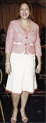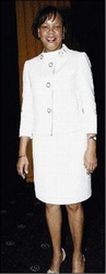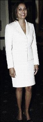 Left: Assistant general manager at NCB's Retail Banking Division, Bernadette Barrow, represented her corporate corridors in fine style in this ultra-fabulous off-white, style-perfect skirt suit! Way to go! Right: Joan-Marie Powell stands fashionably proud and she has every reason to be. Sporting corporate chic, she poses for Something Extra.