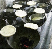 Several bammies are made at once in these Dutch pots.
