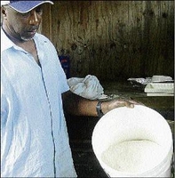 Roland Barnes of H. Smith and Son shows Food some cassava flour.