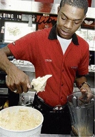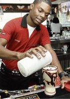 Versatile bartender Albert Brown of TGIFriday's mixes drinks during Food's visit.