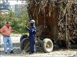 Peter McConnell speaks to a worker adjacent a laden cane cart on the Worthy Park Estate in Lluidas Vale, St Catherine in this 2006 Gleaner photo. - File