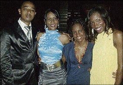 An Elegant Affair's Karen Clarke (centre) simply glows in black. She is flanked by Youth View Awards 2008 Style princess D'Angel (left) and friend Tunya at the launch of the 2009 Youth View Awards held at the Devonshire, Devon House, on Friday, January 2. - Contributed
