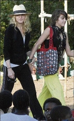 The singer, casually dressed in a white fedora, walked in Chinkhota, a village near the capital of this AIDS- and poverty-stricken southern African country, holding the hand of her 12-year-old daughter, Lourdes. Dozens of reporters looked on.
