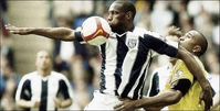 Stoke City's Ricardo Fuller (right) competes for the ball with West Bromwich Albion's Shelton Martis, during their English Premier League soccer match at the Hawthorns stadium, West Bromwich, England, last Saturday. - AP