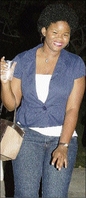 The young, gifted and black Jewel Robinson, who refuses to wear a perm in her hair, has a ball at Johnny Gourzong's bird-fest at Caribatik in Falmouth, Trelawny, last Saturday. - Photo by Janet Silvera