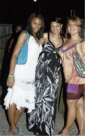 Jaynae Gaston (left), Passion Foy (centre) and Sarah Turkey make a grand entrance into Summerfest Production's Johnny Gourzong's bird-fest party at Caribatik in Falmouth, Trelawny, last Saturday.