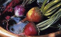 Red beets are fascinating and part of the pleasure lies in cooking it. The reddish-purple comes from betacyanin, a powerful cancer-fighting agent and the same substance that tints bougainvillaea and, in times past, used to make rouges to light up the cheeks of Russian women. The earthy taste of beets is distinctive, resulting from a compound called geosmin, produced by micro-organisms in soil. For reasons unknown, beet absorbs more geosmin than any other root vegetable.