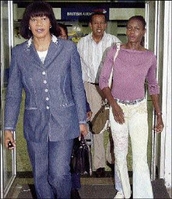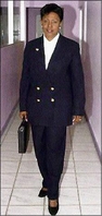 Portia Simpson Miller escorts Olympian Merlene Ottey home in 2005 in yet another tailored denim suit. We would bet the farm it's Escada! - Ian Allen Staff/Photographer