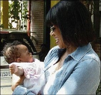 Studded denim jacket with inner blouse was the choice as Minister Portia Simpson Miller cuddles baby Chloe Stone on a visit to the Bob Marley Museum after laying a basket of flowers at his statue on the last day of celebrations marking Bob Marley's 61st birthday on Friday, February 10, 2006. - Junior Dowie/Staff Photographer