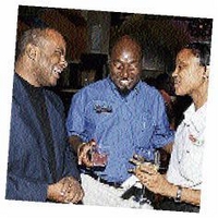 Digicel executive Tricia Thompson (right) in discussion with Wealth Magazine's boss Garth Walker (centre) and Ian Lyn of New Line Group of Companies at Friday's Corporate Mingle networking session at the new Fiction nightclub. - Contributed