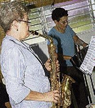 Cathy Gilpin-Hudson (left), saxophonist, and Mara Christian entertain guests at the Women's Club luncheon held at the Women's Club home in St Andrew yesterday. - Colin Hamilton/Freelance Photographer