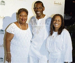 From left: Director General of Tourism Carrole Guntley, Beaches Resorts' Weston Haughton and Tourism Excellence Programme's Marie Matthews pose for the cameras at the Japex party at Sandals Cay in Montego Bay on Tuesday night. See the Friday Social for details. - Photo by Janet Silvera
