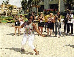 United States travel agent, Gay Alexia, dances up the sands at the Iberostar Resorts beach party.