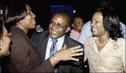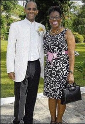 Director of Public Prosecutions Paula Llewellyn with the groom Albert Edwards, chief parliamentary counsel, before the official start of his wedding to Joan Thomas, Jamaica's deputy high commissioner to the UK last Saturday. - Colin Hamilton/freelance photographer