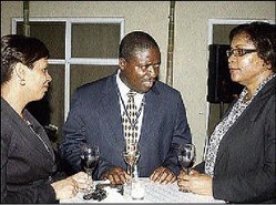 A jocular Nigel Logan of the Petroleum Corporation of Jamaica (PCJ) has a strange look for Carol Crooks (right) of PCJ while Carlene Gordon of Petrojam looks on at the NCB reception. - Winston Sill/Freelance Photographer