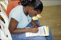 Nineteen-year-old Anika Shaw fills out forms to join the Young Entrepeneurs Programme during a sensitisation seminar at the St Elizabeth Technical High School on July 3. - Photo by Tashieka Mair