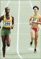 Jamaica's Celia Walters (left) wins her 200m heat at the 6th IAAF World Youth Championship in Bressanone, Italy, yesterday. - Anthony Foster/Freelance Photographer