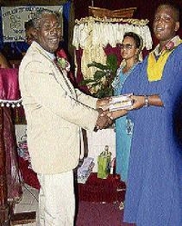 The Rev Carlton Wilson awards the highest male GSAT scorer, Rojay Beharie.