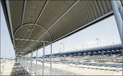 Construction across the road at the accompanying North terminus was not as far advanced. Last Thursday, work was still being done on an outer wall. Inside, workmen were laying brick and a roller was being used to smooth down the surface. There were no visible stands, but the pavement marks the spot where they are to be.