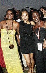 Friends Sandra Coke (left), Montego Bay-based singer; Yolande Rattray-Wright (centre), managing director of The Wright Agency, and Coleen Douglas, communications director with the Jamaica National Heritage Trust, pause for a photo opportunity during Reggae Sumfest International Night last Friday in Catherine Hall, Montego Bay. - Photo by Noel Thompson