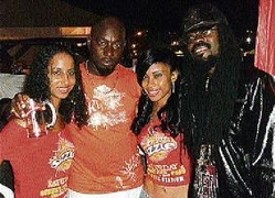 Sizzle girls hang out with Garth Walker (second left) and the king of the dancehall, Beenie Man, during Reggae Sumfest. - Contributed