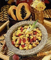 The exotic fruits in tropical bean salad perk up traditional bean salad. The recipe comes from chef/restaurateur Sam Choy who was raised on Hawaii's big island.