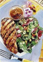 6. Place chicken breasts on grill. After 5 minutes, brush chicken with marinade, repeating until chicken is done to your liking. Remove from grill.