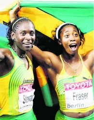 Berlin, Germany: Shelly-Ann Fraser sped to a national-record 10.73 seconds to add the world 100 metres title to her Olympic crown at the 12th IAAF World Championships in Berlin, Germany, last night. Two Jamaican women hit the line almost together as Kerron Stewart...