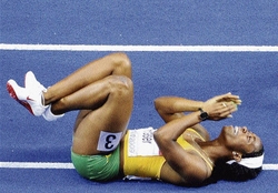 Fraser, who flashed a broad smile after hitting the line and paraded in front of the stands at the Berlin Olympic Stadium wrapped in a Jamaican flag, said the title "world and Olympic champion" gave her a great deal of satisfaction. It made her feel "so good".