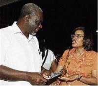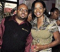 Reverend Oliver Daley gives Scherrie-Ann Spence his undivided attention during cocktail hour.