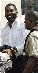 RIGHT: Leebert Ramcharan being escorted to the Corporate Area Resident Magistrate's Court on March 10, 2004, for his extradition hearing.