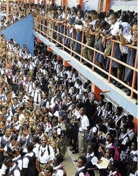 Students gather for devotion on the first day of the new school year at Tivoli Gardens High School in west Kingston yesterday. - Norman Grindley/Chief Photographer