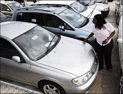 Tracey-Ann White, a sales representative at Crichton Automotive Limited, checks one of the used cars in the dealership's parking lot in St Andrew.